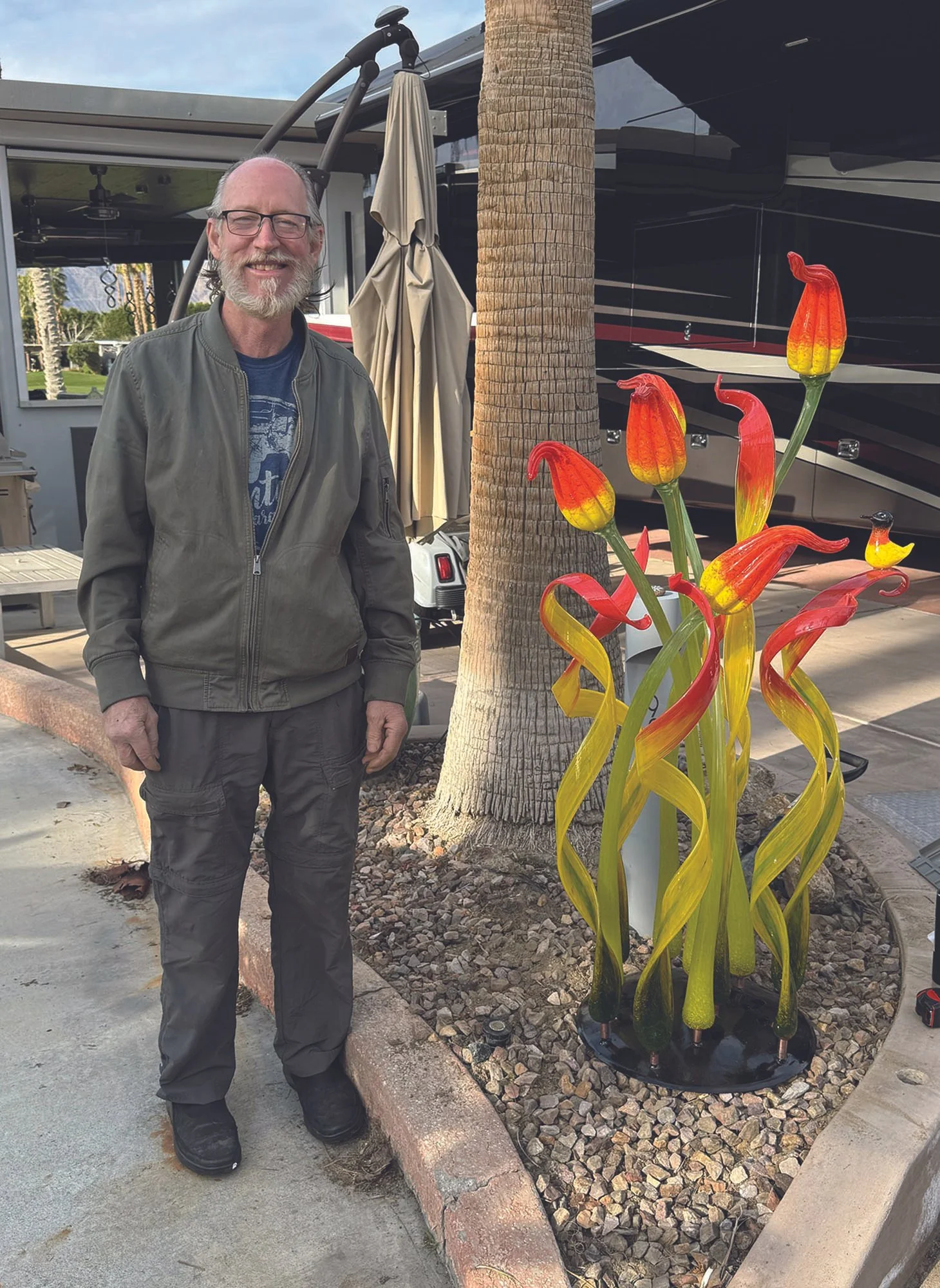Joi received her BFA from the University of Colorado, then continued to pursue glassblowing at Appalachian Center for Crafts. Dan's Journey began in stained glass. After graduating from high school and eager to learn more, he went to work at Fremont Antique Glass in Seattle, hand-blowing sheet glass. Joi and Dan met at Pratt Fine Arts. Training under prolific glassblowers and adding Pilchuck Glass School to their resumes, they’ve embarked on an adventurous art career. Working as a team for 41 years, they've earned more than 20 Best Show and Category awards. While most of their art is in private collections, the Saint George Utah Art Museum has two LaChaussees. They have both participated in successful shows at the Loveland Sculpture Park since 2021. They have new art every year.