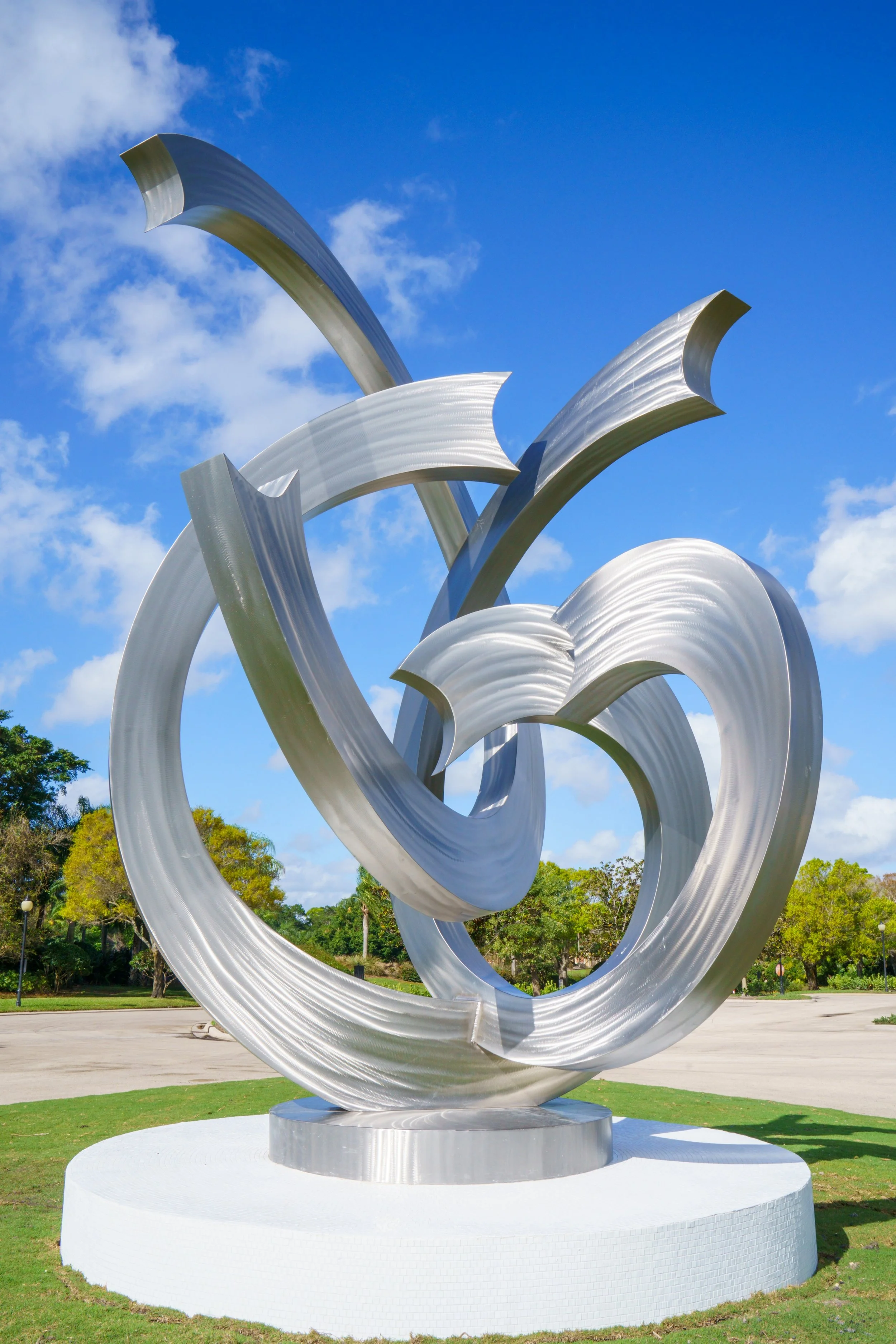 Kevin Robb has established himself as a prominent metal sculptor over the past four decades, earning recognition nationally and internationally. His distinctive style and masterful welding techniques set his work apart. Educated at Rocky Mountain College of Art + Design, Robb continues to produce his magnificent metal sculptures, characterized by their contemporary, dynamic, and free-flowing forms, even after a life-altering stroke in 2004. His work is widely collected by public, corporate, and private institutions, museums, and universities throughout North America and in six international countries, including a 30-foot stainless steel sculpture at Gateway at Torrey Hills in San Diego.