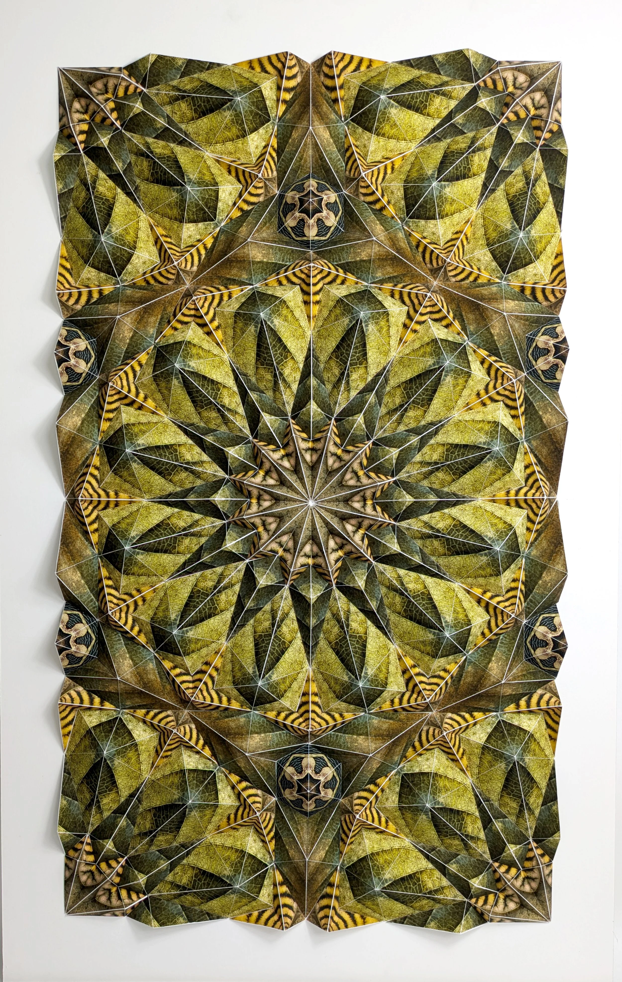Lauri begins each piece by photographing insect wings, then transforming the photographs into geometric forms to create larger geometric patterns. These patterns serve as a universal language of form, connecting individuals to the depths of geometry, science, and the natural world. In this exploration Lauri invites others to find solace, awe, and a connection to the interplay between imagery, form and pattern. Lauri holds a BFA from the Maryland Institute College of Art. Her work has been exhibited in galleries and art festivals nationwide. She has received several prestigious awards, including "Best of Colorado" at the Foothills Artsweek and a Merit Award at the Main Street Fort Worth Arts Festival.