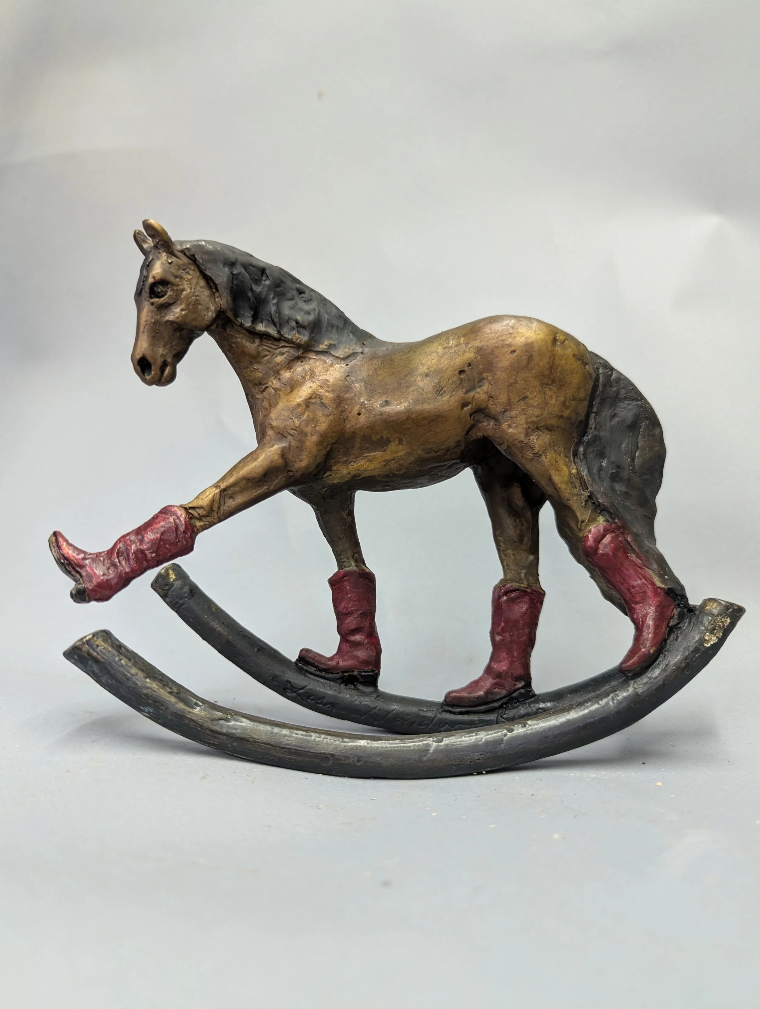 Lisa Gordon is a sculptor whose work centers on the horse as a metaphor for the human experience. Working primarily in bronze and steel, she creates dynamic forms that explore themes of strength, resilience, movement, and connection. While equine imagery anchors her practice, Gordon’s sculptures move beyond traditional representations, blending organic forms with industrial and reclaimed materials to create pieces that feel both timeless and contemporary.