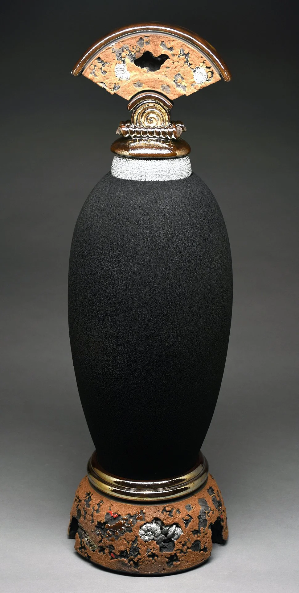 Ganstrom has developed an innovative glaze palette, meticulously applying glazes over several days or weeks prior to firing each piece in the kiln. He further enhances his work by removing pieces while the glazes are still molten to create distinctive effects.