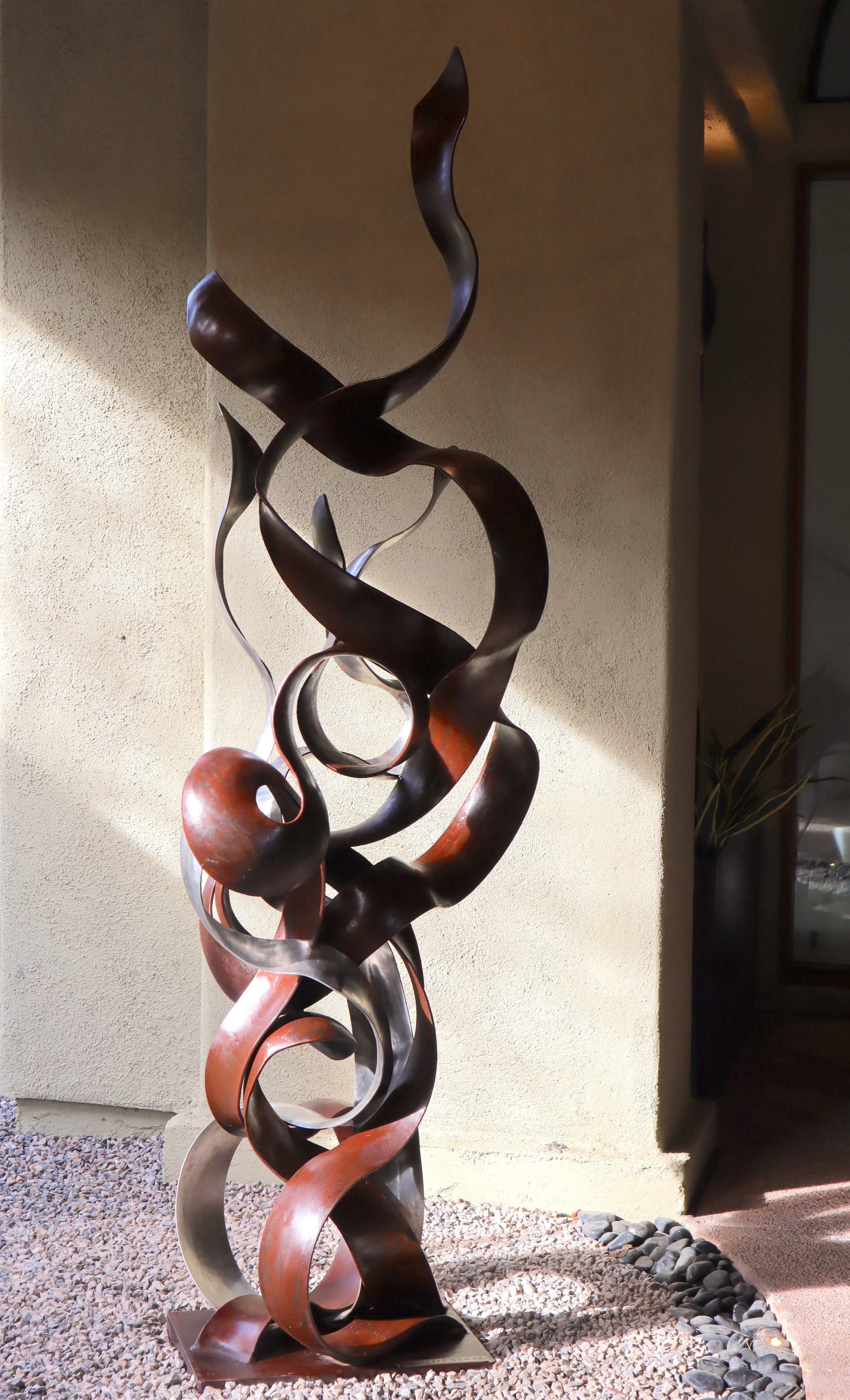 Steve has worked with metal for 33 years, ever since he took a blacksmithing class and got a job assisting an artist blacksmith. Steve’s formal study of jewelry-making and other fine metalwork influences his current sculptural art, which is held in private collections in the western U.S. In 2024, Steve won Honorable Mention at MoabArtTrails for a sculpture that the city of Moab, Utah, later purchased. Steve’s sculptures are in the permanent public art collection of St. George, Utah, and Buffalo Creek Art Center in Gardnerville, Nevada. Steve is represented by InArt Gallery in Santa Fe, New Mexico, and Más y Más gallery in Tubac, Arizona.